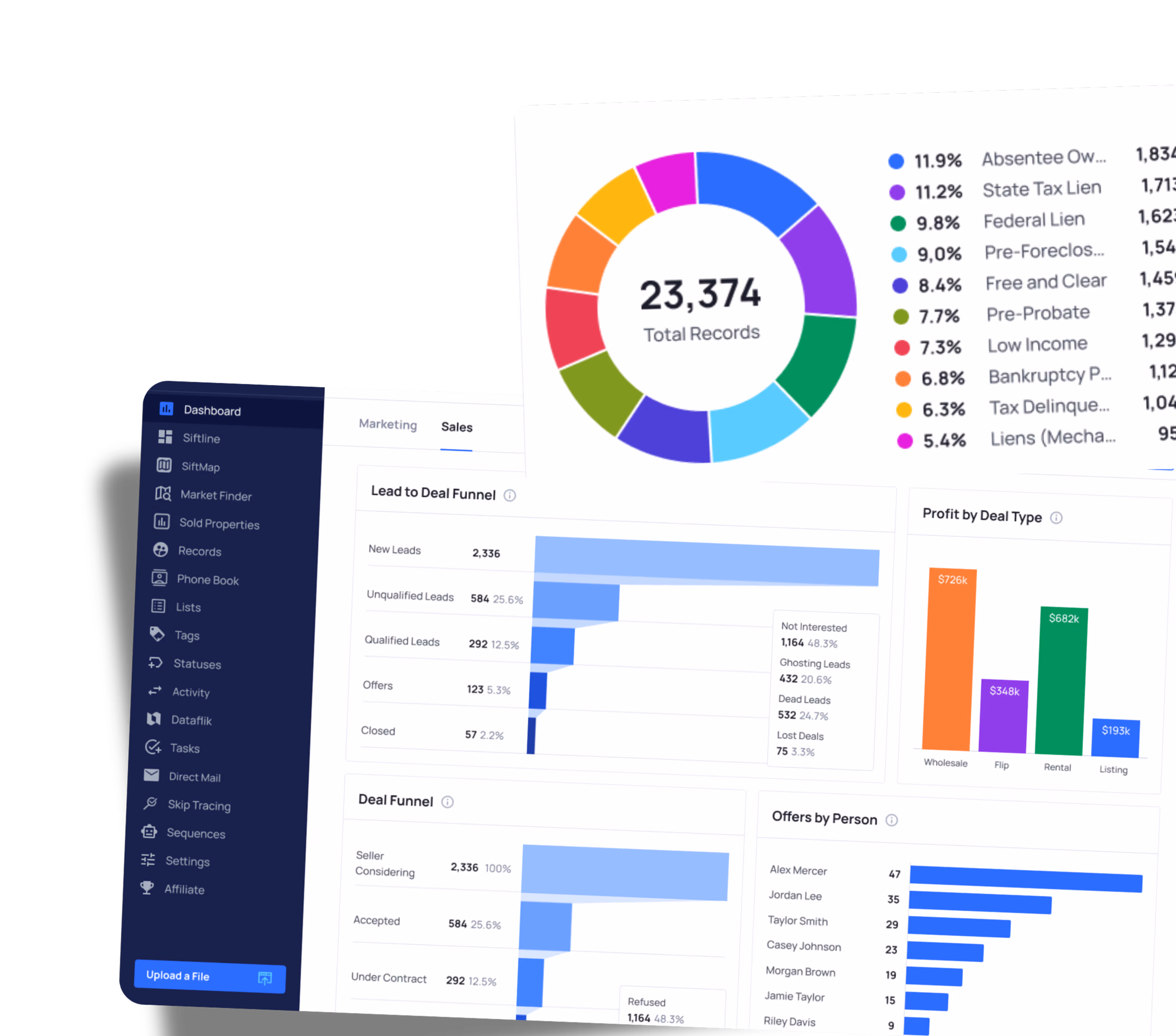 Sift Dashboards give real estate investors one clear place to see the health of their business.