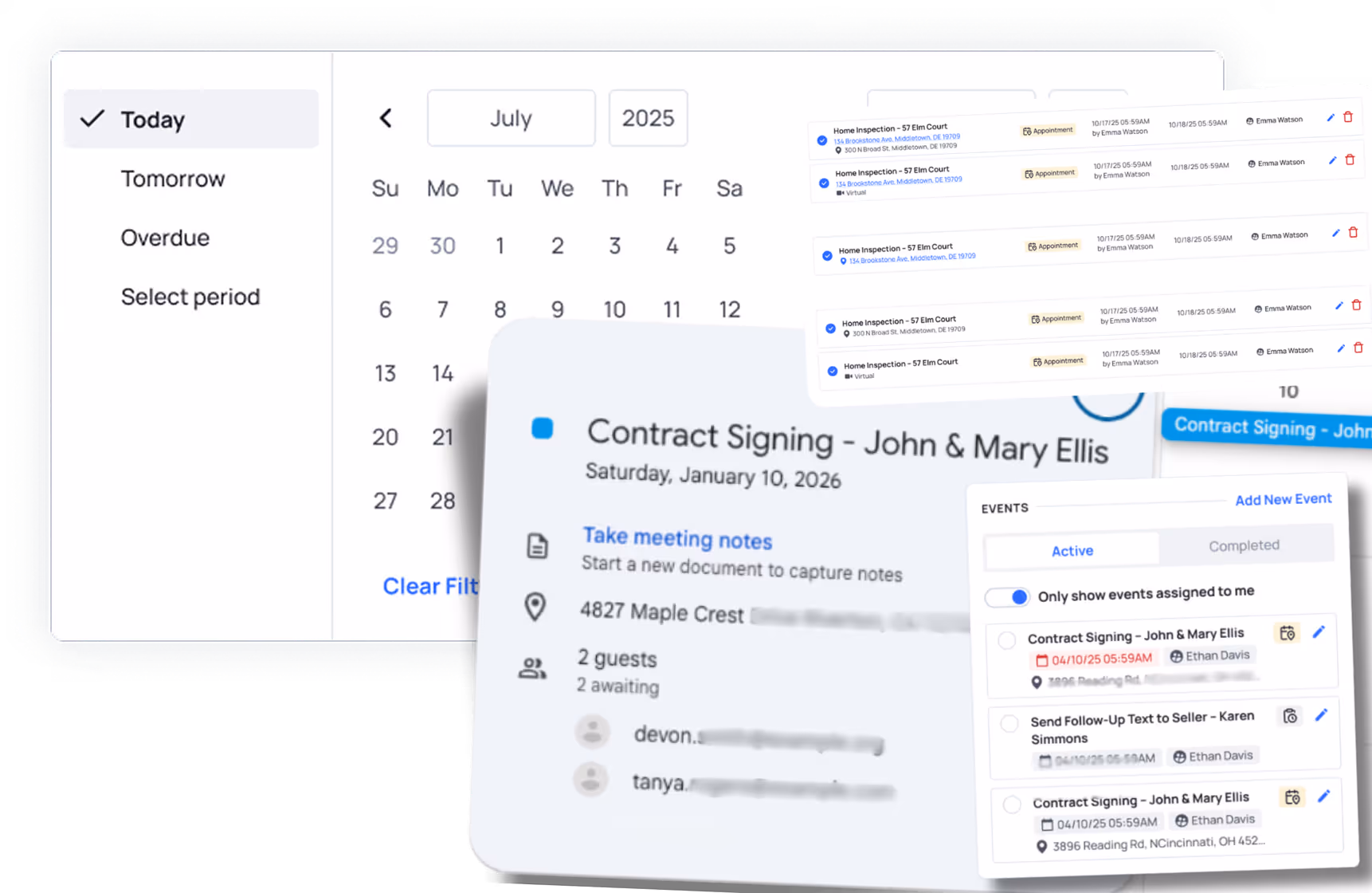 Real estate teams should be able to easily see how many appointments are happening, who’s attending, as well as tasks throughout the company that need completing. Events bring more focus to real estate companies and make processes smoother.
