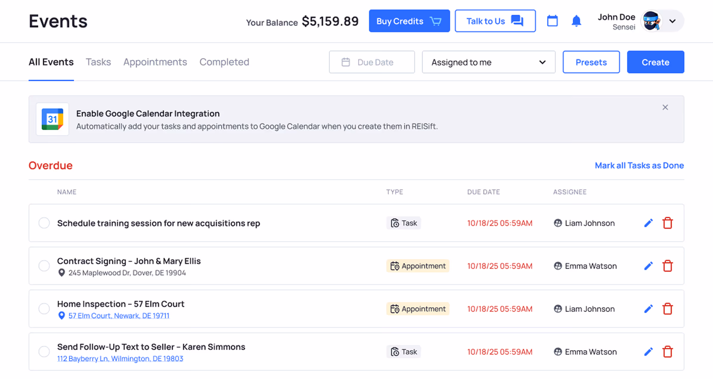 You can now create “Events” inside Sift for appointments and tasks that automatically populate into your google calendar.