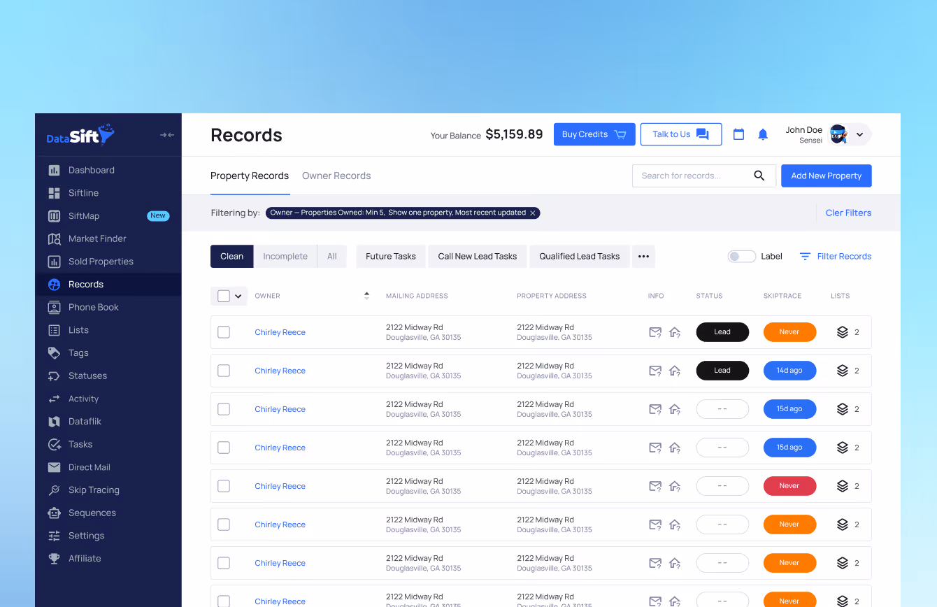 The DataSIFT team want to just hop on here and thank you for the release of SIFTMAP. The not having to go back and forth between PropStream or PropWire and any of these other platforms, just to get basic info is a huge advantage. Saving me an extra couple hundred bucks a month, and that way I can put it towards more direct mail in the system, as well as obviously saving a bunch of hours every week and just focused on revenue generating stuff.
