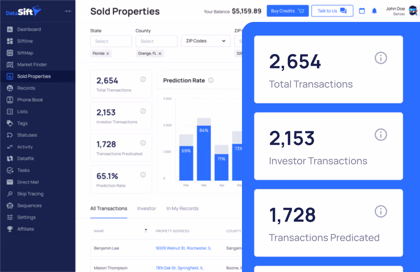 The DataSIFT team want to just hop on here and thank you for the release of SIFTMAP. The not having to go back and forth between PropStream or PropWire and any of these other platforms, just to get basic info is a huge advantage. Saving me an extra couple hundred bucks a month, and that way I can put it towards more direct mail in the system, as well as obviously saving a bunch of hours every week and just focused on revenue generating stuff.