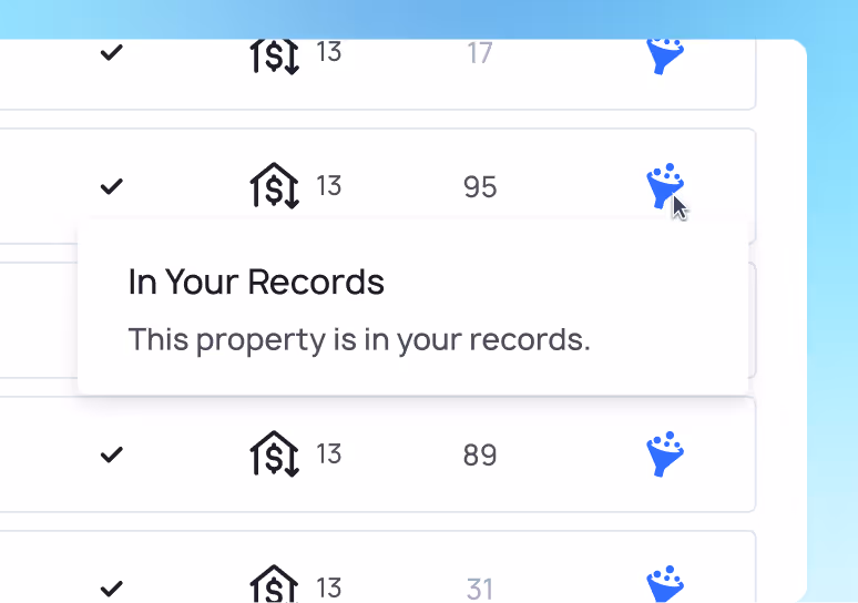 View the exact distress flags attached to sold properties, such as tax delinquency, absentee owners, tired landlords, or vacant properties.