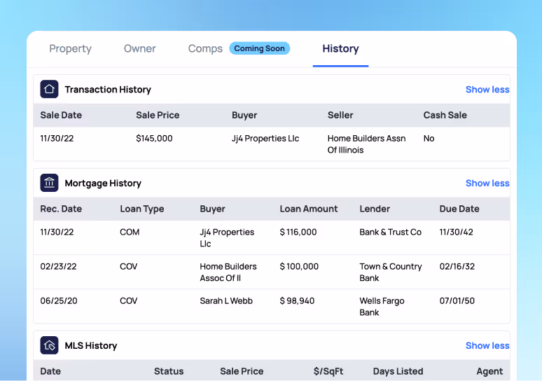 See the exact sale prices and transaction history for investor-purchased properties.